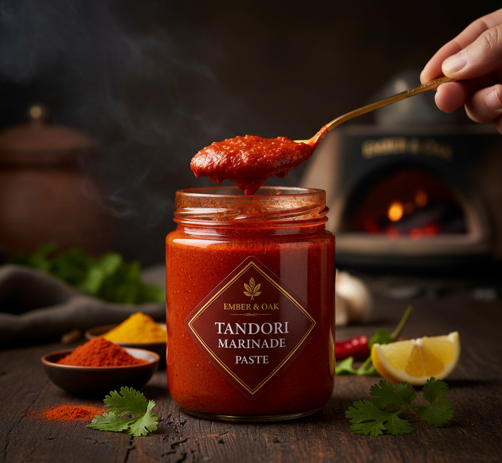 A ready-to-use smoky and spicy paste made with roasted red chillies, garlic, and yogurt — your shortcut to perfect tandoori flavour.